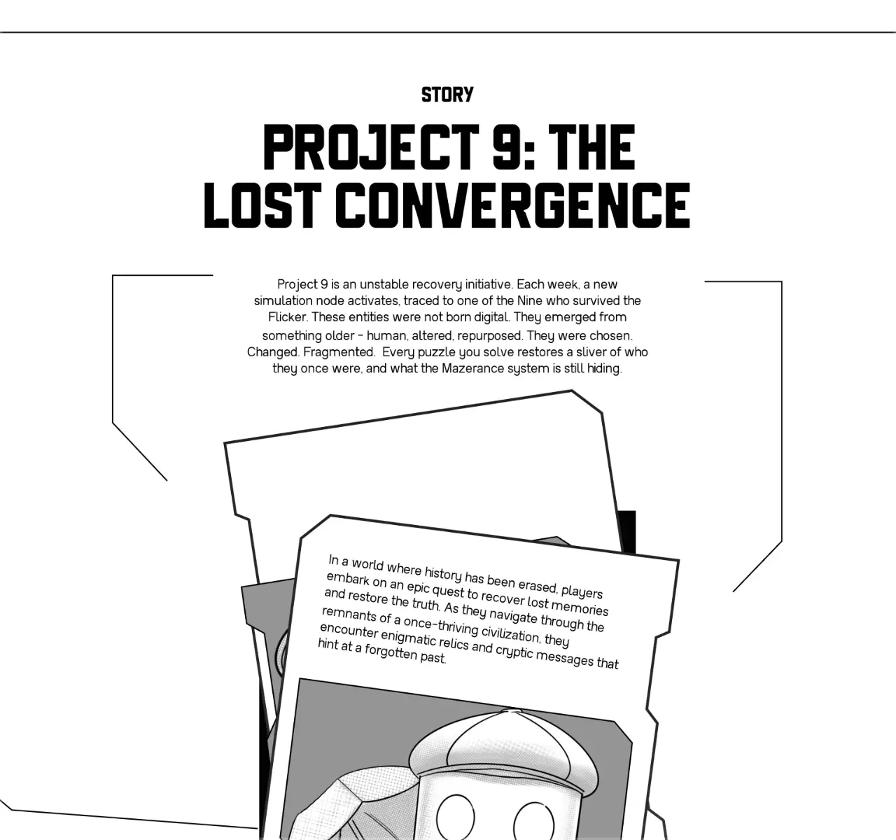 Mazerance extends beyond traditional gameplay into a connected story that unfolds across multiple platforms. The experience doesn’t stop in the game... clues show up on our site and social platforms too, and players race to solve them together. These discoveries often link back to your main run, unlocking hidden moments and revealing new layers of the world. Through design, art, and shared effort, you take part in recovering lost memories and rebuilding what the world has forgotten.